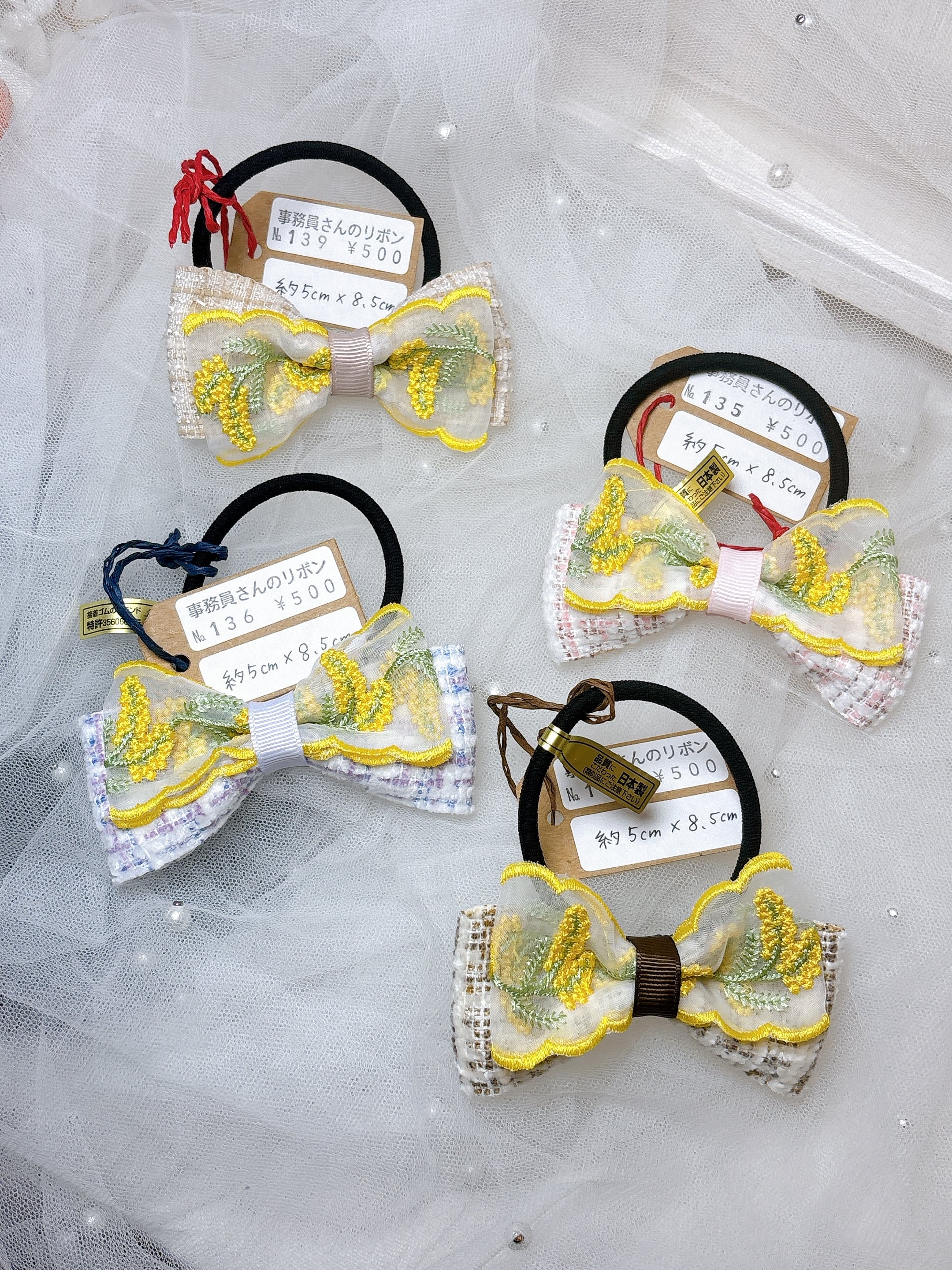 事務員さんのリボン ミモザヘアゴム