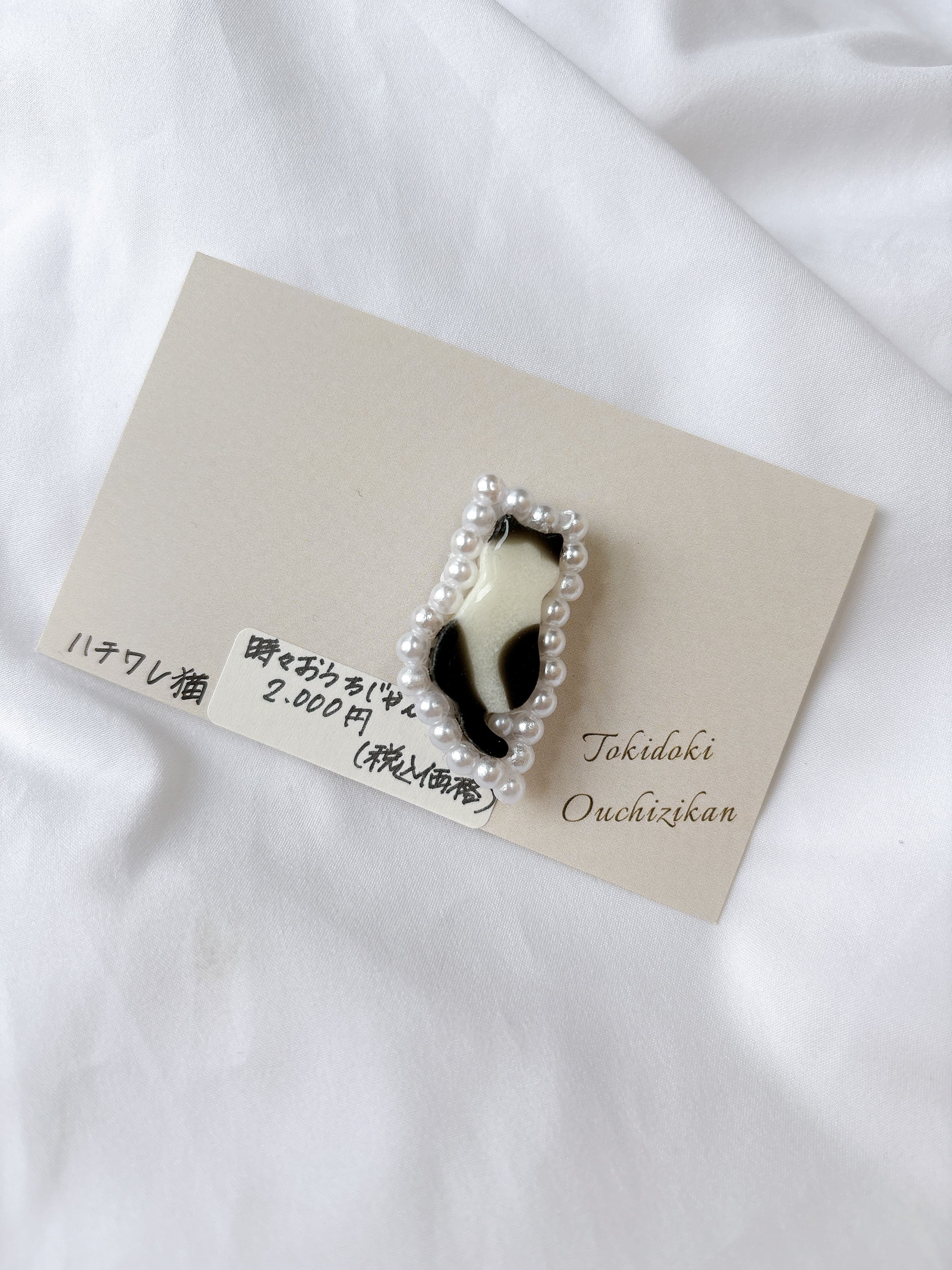 手作りのハチワレちゃんがパールで華やかに!